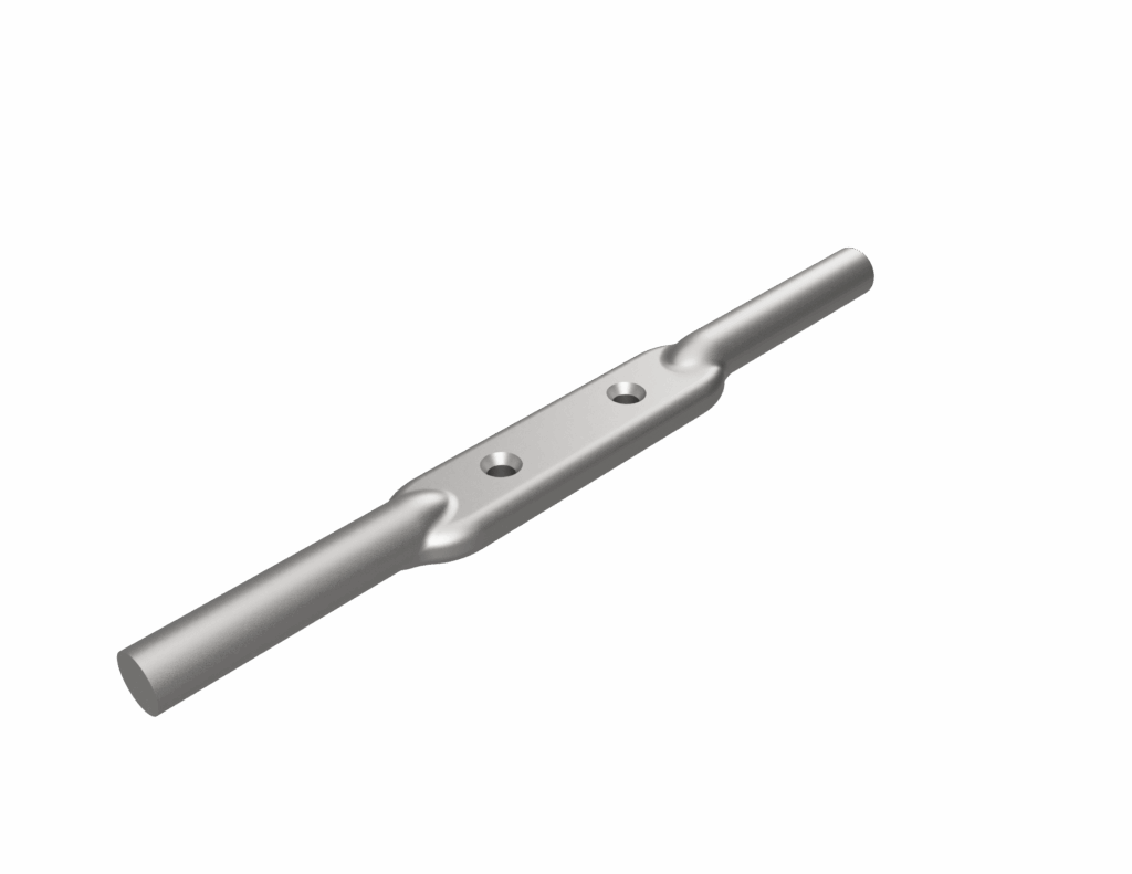 The Highflex is a riveted centre-belt connection designed for 3-by or multi-belt webs. Just like the Superflex, the rod is first heated and compressed in the centre to add strength—but with the Highflex, the extra material is concentrated in the height rather than the width. This results in a higher flattening area, ideal for applications where additional material thickness is required.