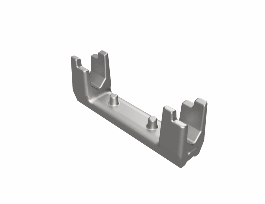 The KS clip is a robust centre-belt connection that wraps under the belt and grips the rod on both sides of the centre. This setup uses a two-by rod without any flattening in the middle—eliminating weak points at the centre.